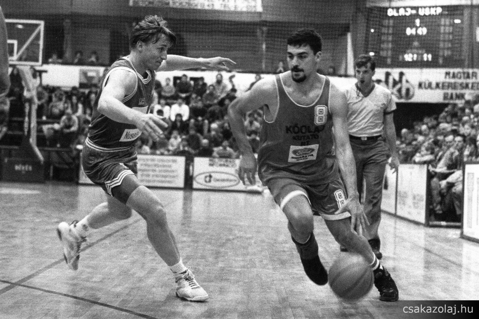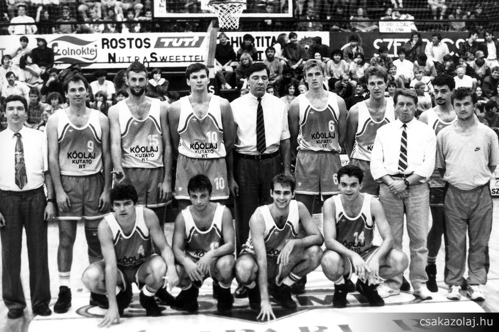 Az Olaj az 1993-94-es bajnokságban. Álló sor (balról-jobbra): Kékesi István szakosztály igazgató, Tóth Attila, Stojan Ivkovic, Góbi Henrik, Rasid Abeljanov edző, Varga Géza, Bódi Péter, Ladoniczky Zoltán orvos, Antonio Alexe, Végső Béla gyúró. Guggolnak (balról-jobbra): Hosszú István, Takács Attila, Knézy Jenő, Mérész Tamás